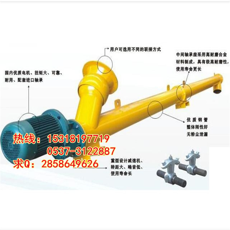旋转的螺旋叶片将物料推移而进行输送,使物料不与螺旋提升机叶片一起旋转的力是物料自身重量和螺旋提升机机壳对物料的摩擦阻力。