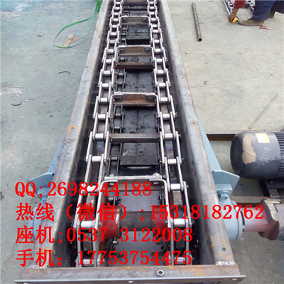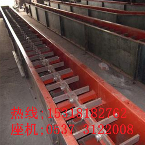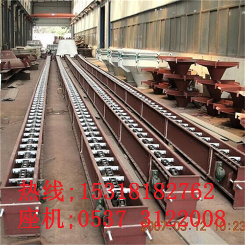 埋刮板输送机是一种在封闭的矩形断面的壳体内,借助于运动着的刮板链条连续输送散壮物料的运输设备。因为在输送过程中,刮板链条埋于被输送的物料之中,故而称埋刮板输送机。埋刮板输送机在水平输送时,物料受到刮板链条在运动方向的压力及物料自身重量的作用,在物料间产生了内摩擦力。这种摩擦力保证了料层之间的稳定状态,并足以克服物料在机槽中移动而产生的外摩擦力,使物料形成连续整体的料流而被输送。