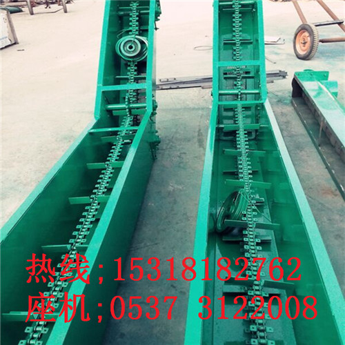 在垂直提升时,物料受到刮板链条在运动方向的压力,在物料中产生了横方向的侧面压力,形成了物料的内摩擦力。同时由于下水平段的不断给料,下部物料相继对上部物料产生推移力。这种摩擦力和推移力足以克服物料在机槽中移动而产生的外摩擦阻力和物料自身的重量,使物料形成了连续整体的料流而被提升。