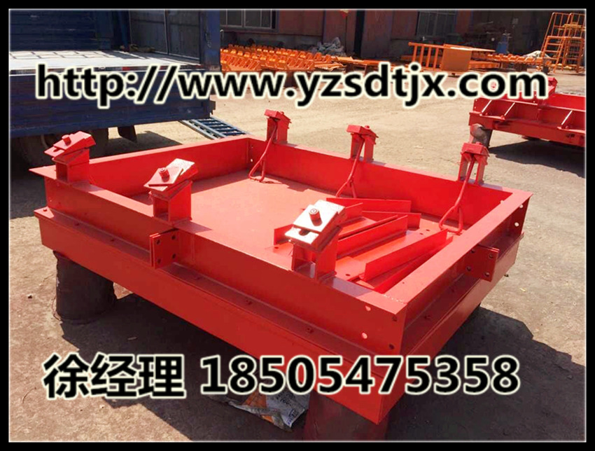 ④ 安装门扇,通过预埋的吊环将门扇吊起与门框平行贴合,并成铅垂,然后固定。