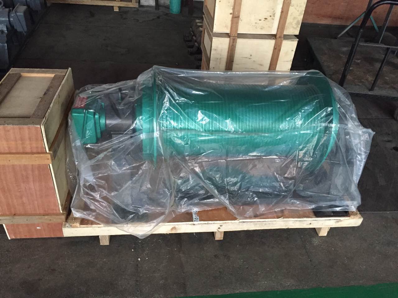 本装置采用机电一体化的设计思路,驱动部分采用内置式二级传动,一级为摆线传动,二级为齿轮、齿圈传动,具有重量轻、体积小、传动比大,效率高的优点。传动比大保证卷筒安全低速转动;
