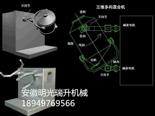 安徽明光市瑞升机械有限公司,专业生产三维混合机,三维混合机节约能源、操作方便、劳动强度底、工作效率较高。可按照客户要求加工定制,厂家直销价格公道,质量保障!