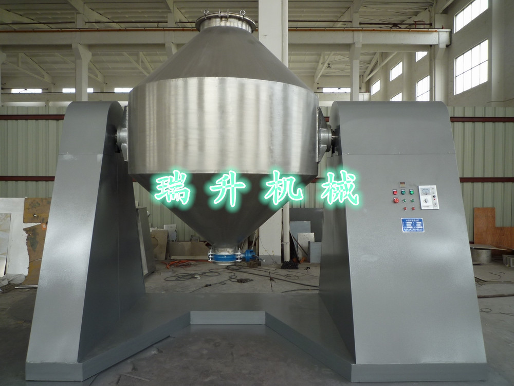 3双锥筒及搅拌叶片同时转动,旋转的双锥筒使筒体内物料产生紊乱翻滚混合,高速旋转的搅拌叶片打碎结团物料,使物料在筒体内快速混合。