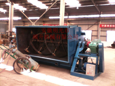 搅拌叶一般为:双螺带,对于粘湿物料采用单螺旋梨刀型。运动方式:1、搅拌叶转动箱体不动;2、搅拌叶和箱体相对转动。出料方式:1、箱体底部中间出料;2、箱体端头出料。搅拌方式:1、间断式:搅拌一定时间再放料;2、连续式:连续搅拌连续出料。