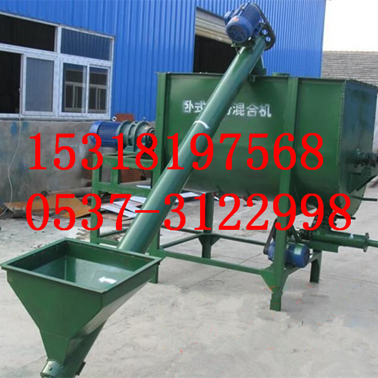 正式开始使用饲料搅拌机后,一定要注意不要用手、木棍等强行喂料,以防手卷入机器。卧式饲料搅拌机适用于生产预混料、养猪、兔、羊、鸡、牛、鱼等畜牧养殖业。搅拌机器特点配用减速机,噪音低、持久耐用。 短时间内完成均匀混料,低耗能、高效率。 机器内有3圈大螺旋克制了机器死角,没有搅拌不均匀的现象,最大螺旋圈与机器内部只有0.5厘米的间距真正实现了无不均匀现象!上料由机器顶端进料出料有机器低端下料,方便省时的特点是润丰机械厂的一大特点,达到了客户的需求!本机器还有免人工,省人工,方便人工的自动上料搅拌功能!进一步的实现了机器工作现代化!可以搅拌化肥,饲料,粉末,五谷杂粮等混合原料!