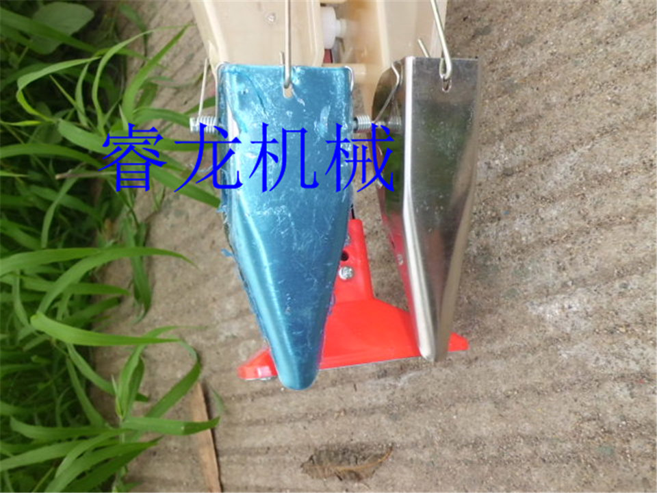 另外,专门有一种尖的播种嘴,可适应免耕操作和硬地本机放弃了传统人工弯腰刨坑播种的辛苦模式,直接将化肥和种子一次性入土壤,种子和化肥隔开5公分,化肥还比种子深一公分,保证绝对不烧种。,而且施肥播种能够保持深浅一致,比传统刨坑播种具有出苗整齐、轻松高效的特点