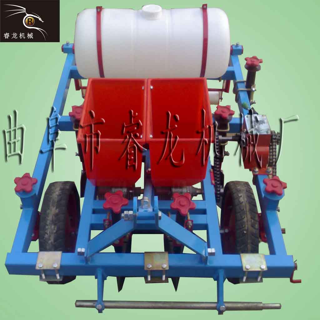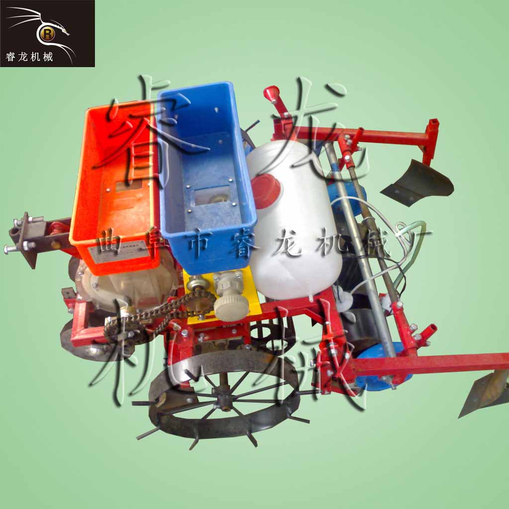 联合作业通过动力输出轴带动刀轴旋耕,在由后覆膜播种机完成起垄、施肥、蓄水、播种、伏土、镇压、覆膜、膜上镇压土等。RL-60型花生播种机是一种技术成熟、性能可靠的旱作农业机具,它与8-15马力的手扶拖拉机配套使用,一次作业可完成播种、施肥、喷药、覆膜以及膜上筑土等多道工序,是人工播种效率的20—30倍。该机性能优良,结构紧凑,调整使用方便,深受广大用户的欢迎。