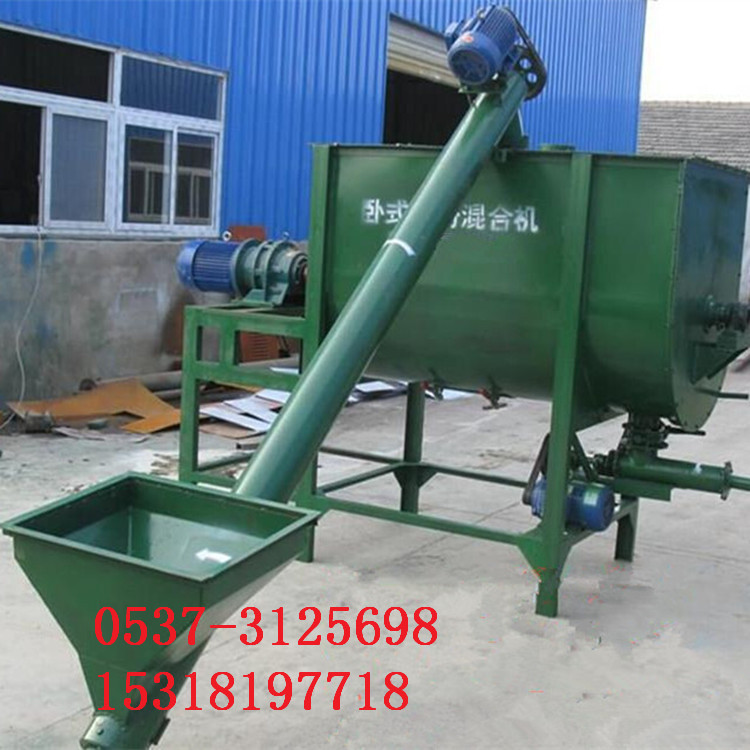 主要用途:本机是专为农村饲养户、小型饲养场、中小型配合饲料厂设计的小型配合饲料加工设备,为双螺带卧式混合机,其功能是将各种成份的粉料、液体混合均匀,具有适用性广、混合均匀度好、物料残留少、维护保养方便等特点,是粉状物料、浓缩料、木粉生物质固化燃料(秸秆煤炭)