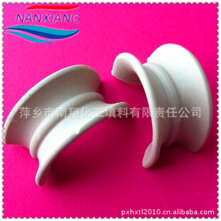 矩鞍填料 将弧鞍填料两端的弧形面改为矩形面,且两面大小不等,即成为矩鞍填料。矩鞍填料堆积时不会套叠,液体分布较均匀。矩鞍填料一般采用瓷质材料制成,其性能优于拉西环。目前,国内绝大多数应用瓷拉西环的场合,均已被瓷矩鞍填料所取代。