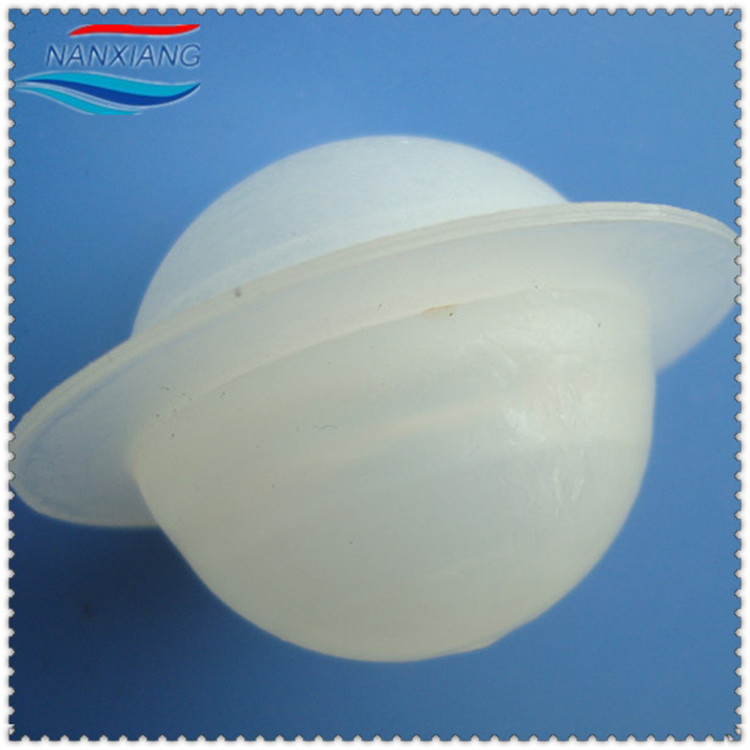 覆盖球主要用于液面上层履盖作用。如:用于酸碱贮罐中,可以防止酸碱气体外溢,挥发、减少酸碱气体对外环境的污染,和节约酸碱材料的作用;用于除盐水中,使空气和水隔离可以减少空气中的CO2,O2及灰尘杂质等对除盐水的污染,保证水质量。