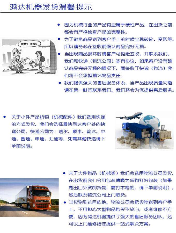 温馨提示: 各位请不要把我们的机器和那些售后没保障,质量差的比,这样只和他们比价格,那么我们的价格肯定会高的。奉劝各位亲买机器不要只看价格,要从质量、售后、机器使用配件配置来比。不要贪便宜买了质量不好的机器才后悔。我公司在行业中二十七年,质量是否信得过是有目共睹的。