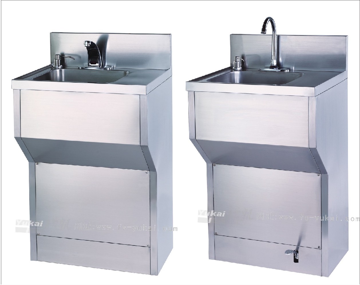 不锈钢洗手槽,不锈钢洗手池专为手术室,消毒净化室而设的。采用sus304不锈钢双层制作,中间特殊静音处理,槽身以人体工学设计,洗手时水花不会溅在身上;带冷、热水转换接口,自动感应出水,或脚踏出水,使用便捷,内置洗手液瓶,内置热水装置(选装),带照明镜灯(选装); 另有规格1位500X460X850+150,两位1600X650X1900,3位2200X650X1900可供选择,也可根据实际使用场地而设计.
