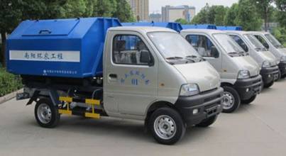 1、自卸式垃圾车——又称为:垃圾收集车,可用于沿街定时收集生活垃圾;