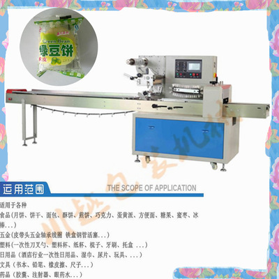 全自动枕式包装机的包装纸膜卷安装于轴辊上,被包装物件放置于加料器中( 对于无规则形状的物件需用手工加料),输送带自动将被包装物件输送到包装位置,包装在纸膜中 然后经过加热后压合成型,送至横封切刀处热合横封,切断。再由输送带输出成品.