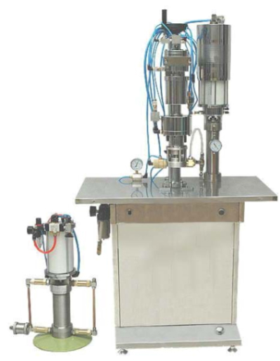 该机集抽真空,灌装和封口一次性完成,也可兼作封口机用,用以灌装冷媒(F12、F22、134a)和空调润滑油等,是产品要求必须在真空状态下,从(无芯阀)盖下灌装后立即封口的专用设备。