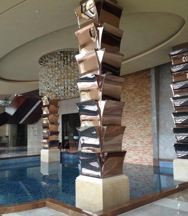 本厂定做的立柱包柱颜色纯正,质量稳定、美观持久,且耐氧化、耐腐蚀,具有典雅、高贵、现代、绚丽、朴素等多种风格,产品广泛应用于各大酒店、写字楼、商务广场、购物中心、高档别墅