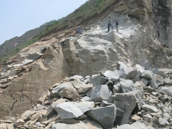 岩石劈(分)裂机简介:液压式岩石和混凝土分裂机替代了爆破和传统的破碎方法。它在破碎岩石和混凝土时不会产生压力波,也没有振动、噪音和粉尘,在采石场的荒料开采领域也拥有很大的技术优势,该机是由迪戈科技有限公司率先开发生产的。 工作原理:岩石和混凝土的抗压强度很高,相比之下它的抗拉强度却相当低。岩石和混凝土分裂机就用这个原理制成的,它有效地利用了楔块原理。 工作方法:首先钻一个特定直径和深度的孔,将分裂机的契块组部分插入孔中,中间楔块在液压力的作用下向前移动并将两个反向楔块撑开。最大张力达500吨,将岩石和混凝土结构从内部进行破坏,几秒种内就会产生裂缝。钢筋混凝土中较细的钢筋被拉断。 特点:采用非爆破技术,清洁、静音作业、无环境扰动、振动、冲击、飞石、粉尘、炮声,是经济、安全、环保的作业方式。分裂机结构小巧而重量轻,分裂机重17~32kg,液压动力系统重37~230kg(有电动、气动、汽油机、柴油机),操作简便、运输方便、可选用多种动力源。可控碎石方向,分裂精度高,既可在室内狭窄场地、建筑物和机器设备附近工作,也可用于水下施工。劈裂机,液压分裂机,分裂机,劈石机的特点 1.安全性 劈裂机|液压分裂机|分裂机|劈石机在静态液压环境下可控制性的工作,不会像爆破机和其它冲击性拆除、凿岩设备那样,产生一些危险隐患;无需采取复杂的安全措施。 2.环保性 劈裂机|液压分裂机|分裂机|劈石机工作时,不会产生震动、冲击、噪音、粉尘、飞屑等。周围环境不会受到影响,即使在人口稠密地区或室内,以及精密设备旁,都可以无干扰地工作。 3.经济性 劈裂机|液压分裂机|分裂机|劈石机数秒钟可完成分裂过程,并且可连续无间断地工作,效率高,运行及保养成本很低,无需象爆破作业那样采取隔离或其它耗时和昂贵的安仁措施。 4.精确性 劈裂机|液压分裂机|分裂机|劈石机与大多数传流的拆除方法和设备不同,分裂机可以预先精确的确定分裂方向,分裂形状以及需要的出部分的尺寸,分裂精度高。 湖北迪戈科技有限公司针对液压分裂机在进行大块岩石分裂时遇到劈块被卡或楔器收不回等,专业设计出新型分裂器已解决这一问题。