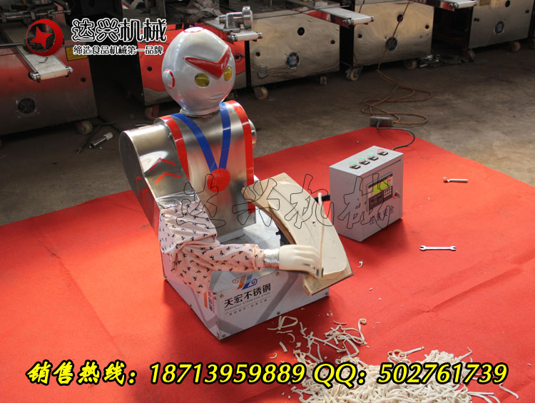 达兴牌奥特曼刀削面机器人是一款外形非常美观,占地面积非常小的机器,同时还具备了非常先进的性能特点和简单的结构,所以在拆装和清洗的时候更加的方便,即使没有任何经验的客户也是可以轻松使用这款机器的,并且我们厂家还会提供非常专业的技术指导,让消费者在使用的时候可以更加的放心,给我们带来更多的经济效益。