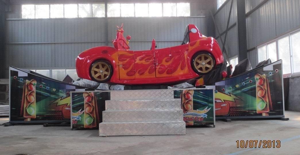 迷你飞车游乐设备是适合1.2M以上儿童和成人乘坐游玩的游艺机。该产品的运动特点是集圆周旋转和沿轨道滑行运动于一体:并且外形美观,色泽鲜艳,玻璃钢模型形象逼真,亮丽。游客在乘坐游玩时,座舱圆盘旋转平稳,车体沿轨道滑行顺畅平稳,并伴随逼真,动听的音乐和闪烁的彩灯,让乘客享受到无限的欢乐。本设备适用于游乐场,公园,广场,文化馆等各种场所。