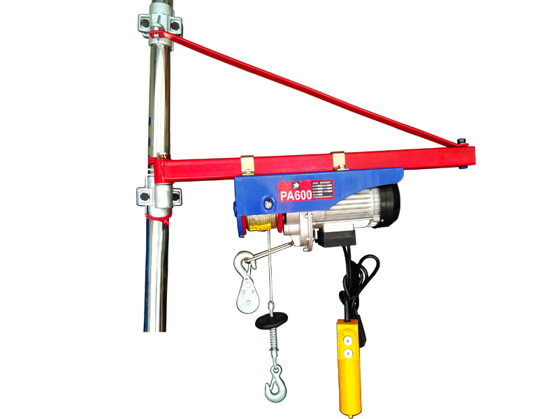 家用小吊机微型电动葫芦220V单项电动葫芦专用支架主要用于微型电动葫芦安装,主要包括可伸缩横梁、斜臂、旋转螺丝组成,总长约1.1米,承重600公斤,可以180度旋转。