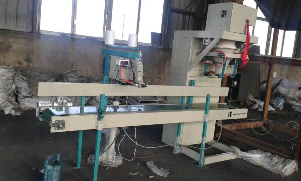 人工往夹带器上套上包装袋,给电脑一个夹带信号,夹带器把袋子自动夹住,这时候当判断到储料仓有料的情况下,控制仪表控制快慢阀门工作,物料开始往袋里自动灌装,当离目标重量还差大概两公斤时,这时侯快进停止,单靠电磁振动来添加到目标重量,重量到达后夹带器自动松开,依靠输送机送到缝纫机旁,完成缝口,缝完口后,操作结束!操作过程:
