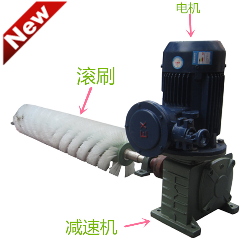 电动滚刷清扫器的组成电动滚刷清扫器一般由电动机,减速机,万向节,尼龙刷辊,支架以及辅助备件组成!
