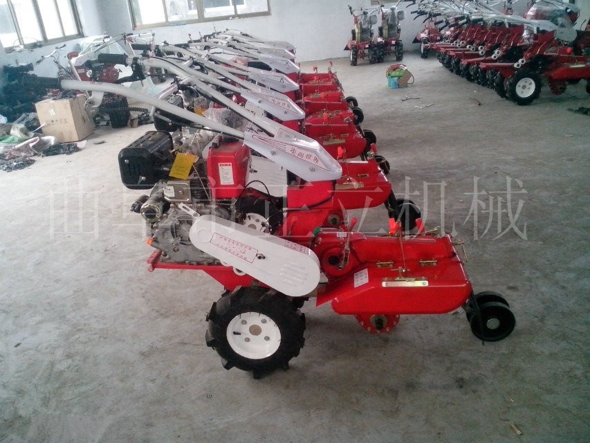 标配:开沟刀(用于开沟)、培土刀(用于大葱、生姜、土豆、培土)。压土轮1副、 铁轮一副、胶轮一副。