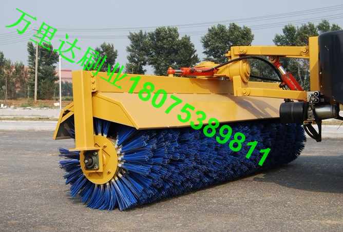 【说明】:采用PP+弹簧钢组合材质设计的刷子,耐磨、不损伤路面且扫雪效果好;设有强制下压功能,增强扫雪效果;采用两个重载滚动胶轮支撑扫雪刷,保证作业的稳定性。 ★扫雪滚刷具有螺旋式结构; ★扫雪滚刷具有液压控制升降和双向摆动功能,摆动角可在0°~30°范围内调节,以此来改变扫雪方向; ★由双液压马达驱动滚刷旋转,扫雪滚刷由汽车底盘提供动力; ★刷毛采用聚丙烯刷毛和弹性钢丝混合制成,耐磨损、抗弯曲,不损坏路面,刷片更换方便、快捷; ★该扫雪滚刷具有浮动功能,滚刷与地面的压力保持在合适的范围内; ★滚刷与底盘车采用驶入悬挂式快速连接,其安装结构可与除雪铲快速互换。 有关刷丝的知识】: