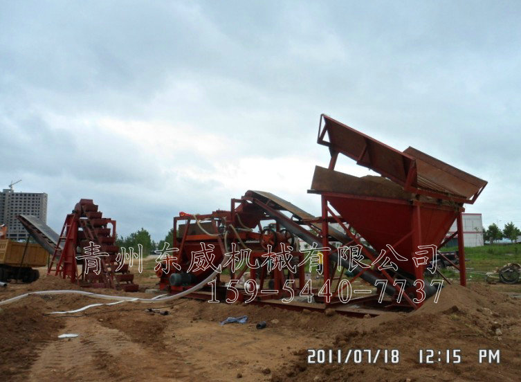 轮斗式洗沙机具有新颖的密封结构和可靠的传动装置,结构合理,处理量大,功耗小,洗净度高,洗砂过程中砂子流失少。洗沙机的传动部分均与水、砂隔离,故障率大大低于当前市场上常用洗沙机,是国内洗砂行业升级换代的绝佳选择。