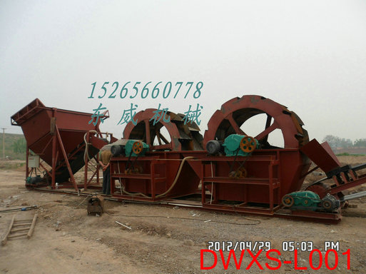 双槽水轮洗砂机产品简介:轮式洗砂机是人工砂(包括天然砂)的洗选设备,是制砂生产线,碎石生产线中必不可少的制砂产品。轮式洗砂机可以将制砂机制出的混合砂子洗去微量的石粉和杂质,从而提高砂子的质量。DW系列高效轮式洗砂机系列是一种轮斗式洗选设备,主要用于建筑工地、砂石厂、水电站混凝土大坝工地、邮电电杆厂需单位砂石、玻璃厂石英砂及油井回填用压力砂的洗选、分级和脱水。DW系列轮式洗砂机采用先进技术,结合国内砂石行业实际情况研制的高效洗砂设备,它具有洗净高度,结构合理,处理量大,功率消耗小,洗砂过程中砂子流失少,尤其是轮式洗砂机传动部分均与水、砂隔离,故其故障率大大低于目前常用轮式洗砂机,是国内洗砂行业升级换代的最佳选择。轮式洗砂机主要用途:该轮式洗砂机广泛用于砂石场、矿山、建材、交通、化工、水利水电、混凝土搅拌站等行业中对物料的洗选。