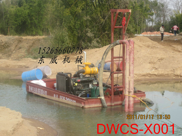小型抽沙机主要构造包括浮体、柴油机、抽沙龙头、手动卷扬机、抽沙泵、打水泵等六部分组成,采用自动与手动相结合的方式达到抽沙的效果,主要适用于石子比例不超过20%的沙场、河道、清淤等作业环境,每小时可抽沙30-50立方,沙子输送距离150m,抽沙深度3-10m,具有体积小、造价低,能耗小,移动方便、操作简单,工作量大,易于运输等特点,是小型沙场、河道采砂的必备工具,是近几年采沙、清淤比较常用的工具。
