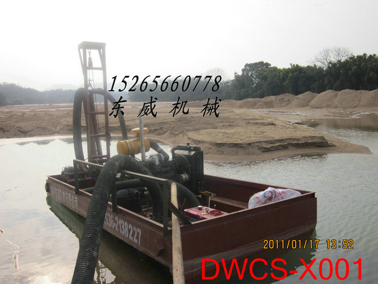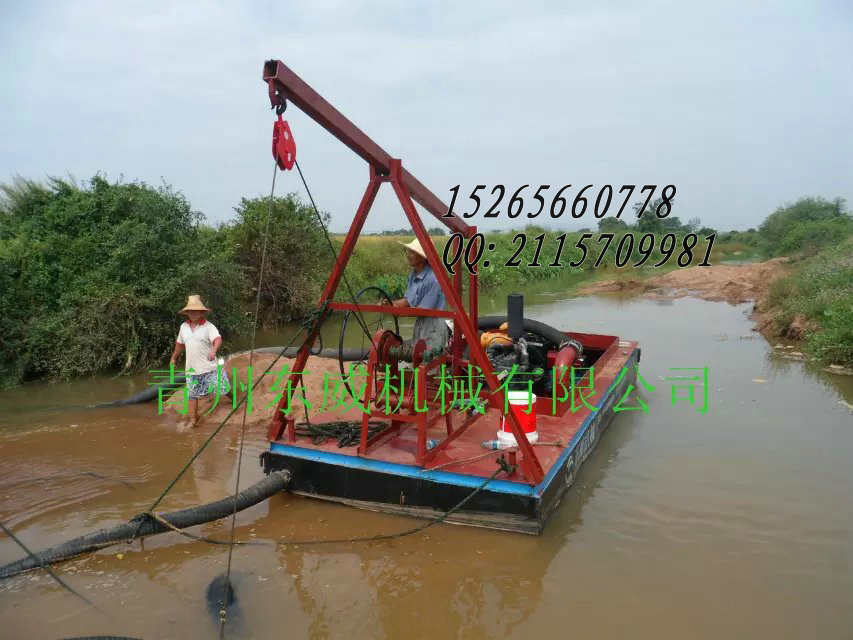 小型抽沙船主要构造包括浮体、柴油机、抽沙龙头、手动卷扬机、抽沙泵、打水泵等六部分组成,采用自动与手动相结合的方式达到抽沙的效果,主要适用于石子比例不超过20%的沙场、河道、清淤等作业环境,每小时可抽沙30-50立方,沙子输送距离150m,抽沙深度3-10m,具有体积小、造价低,能耗小,移动方便、操作简单,工作量大,易于运输等特点,是小型沙场、河道采砂的必备工具,是近几年采沙、清淤比较常用的工具。