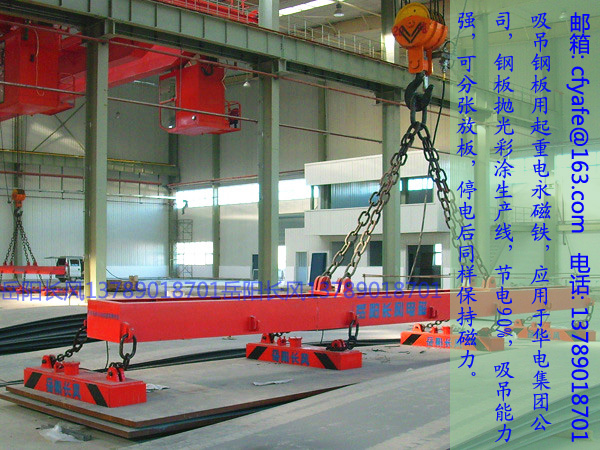 与起重电磁铁比较,具有巨大优势:不耗电节能95%、恒久磁场安全100%、安装维护方便等。成功的解决了起重电磁铁的①耗能,②需断电保护,③具有磁滞现象,④单位面积吸力小,⑤长时间使用有温升问题,⑥维修费用大,⑦寿命短,⑧拖缆作业缺点。