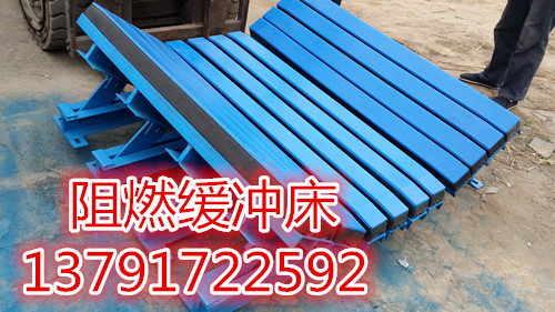 缓冲床主要用于替代缓冲托辊,缓冲床由缓冲条组成,而缓冲条主要应用优良的高弹性特种橡胶层充分有效吸收了物料下落时的冲击力,大大降低了物料下落时对输送带的冲击,真正的改善了落料点的受力状况。并采用特殊的UHMW高分子聚乙烯表面,使输送带与缓冲条之间的摩擦系数降到最低,且耐磨性好。缓冲床的使用保证了输送带的面与面的接触,受力均匀,有效防止了由于托辊断裂、脱落造成的皮带纵向撕裂,同时大大降低了皮带被锐器或尖锐物料穿透后纵向撕裂的概率。