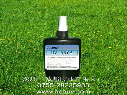深圳市华诚邦胶业有限公司生产销售的“聚隆”UV-9905系列紫外线胶水,又称UV胶水,无影胶水,紫外线胶水,光敏胶水,太阳胶,主要用于粘接灌封和固定其是一款不含溶剂的胶粘剂,在紫外线照射下数秒钟内固化.UV-9900系列对于塑胶透明材料之间的粘接以及塑胶材料与金属之间的粘接都有优良的效果.