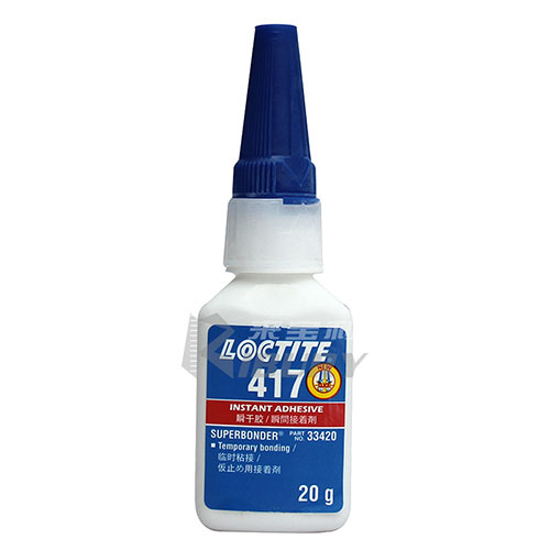 乐泰417胶水: 高粘度,高强度,低气味 粘合材料类型:玻璃、电子元件、皮革、塑料类、橡胶类、纤维类、石材类、金属类、木材类、其他材质、水泥制品、陶瓷、医学类、纸张类、其他