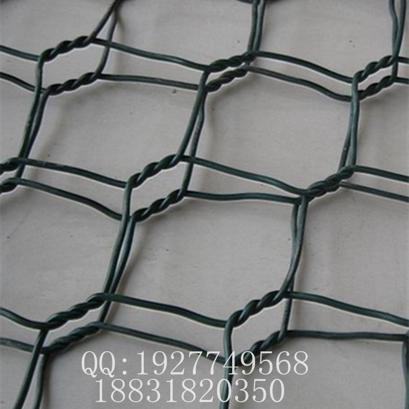六角网箱(石笼、石笼网箱、生态网箱、生态格网、格宾网箱、固滨笼)由机械编制而成的六边形网片组合的一种结构体,高度为40cm~100cm。可以为单元笼体,也可为用间隔网片分隔成的多格笼体。按照ASTM A975-97规范组装而成。工程现场填充石料组装形成柔性的、透水的、整体的支挡结构,用于生态防护工程。网丝采用高镀锌钢丝或者10%铝锌合金钢丝,如果环境条件比较恶劣,污染比较严重,可以在钢丝的表面涂塑(PVC),以增强网丝的抗腐蚀性能。