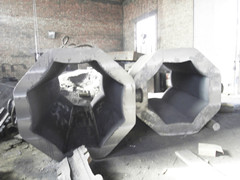 2.圆钢锭模:材质为灰铸铁和球墨铸铁,单重2--150吨,主要用于生产煅造用 钢坯。