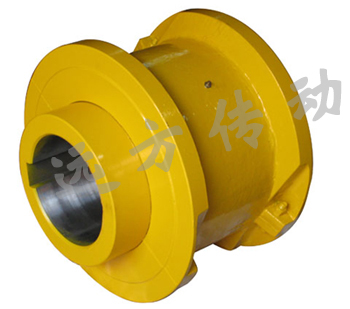 该联轴器的两半联轴器是由由一组或多组蛇形弹簧组成通过凸缘上的齿进行联接,外面还有一个封闭的罩壳,这是为了防止在离心力的作用下,弹簧被甩出,为了避免弹簧与联轴器直接的干摩擦,会在罩壳里注入润滑油或润滑脂。