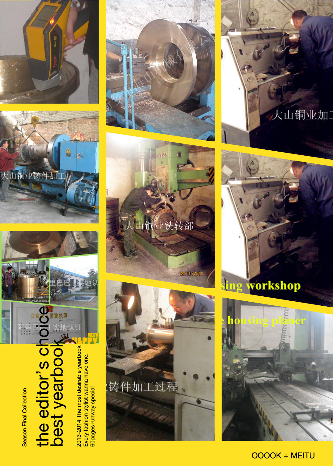 ◆目前主要从事矿山机械与铜合金配件,水泥,造纸设备及设备配件,如铜合金生产加工,采用离心铸造,砂型铸造,铸造及其他铸造方法,精密数控车床生产达到一个最大直径2.2米,最大的一块重约1吨产品一样。
