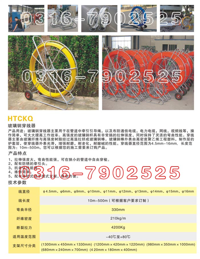 穿线器又被称为:穿缆器,玻璃钢穿缆器,管道穿缆器,批发穿缆器