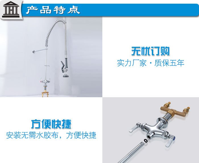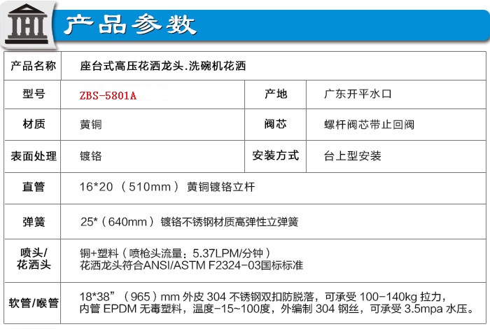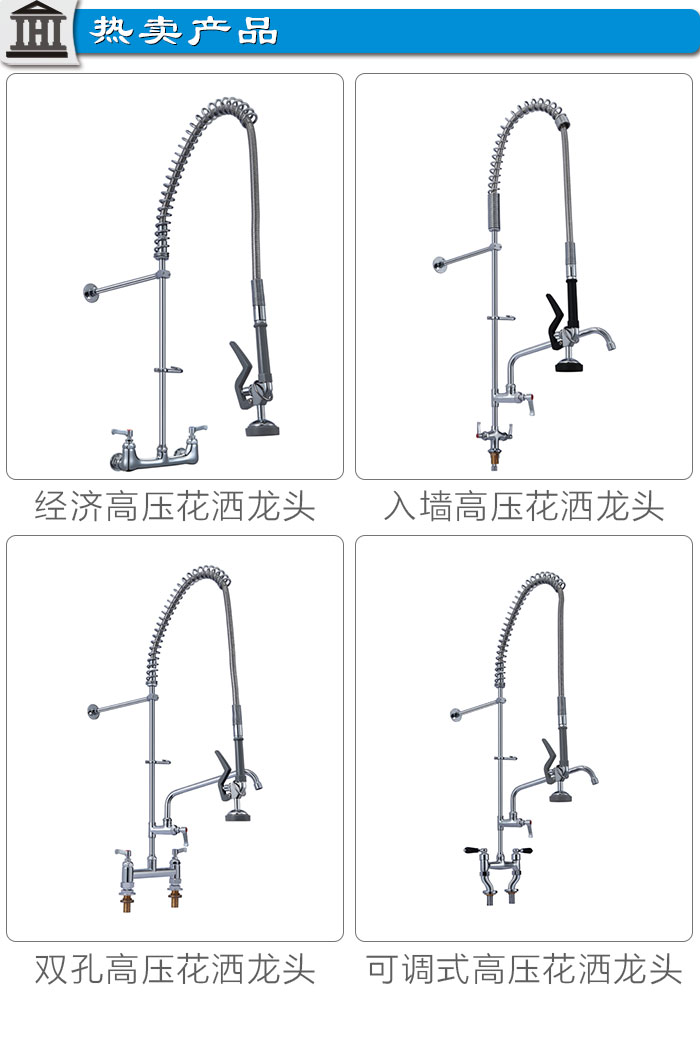 圳镈钏生产的双温座台高压花洒龙头采用国标黄铜制造产品,双温座台高压花洒龙头主要应用于餐厅、商用厨房、宾馆酒店、洗碗机配套、水槽配套,厨具厨房设备配套。双温座台高压龙头又名为洗碗机商用高压花洒龙头,