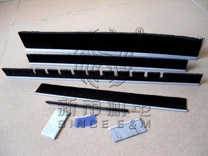 条 刷:产品有不锈钢条刷,橡胶条毛条刷,铁皮条刷,不锈钢丝条刷,波纹尼龙丝条刷,尼龙丝条刷,砖机条刷,马毛条刷等。用于活动门窗、旋转门、平滑门、自动门、自动扶梯、公交车、地铁、电梯等都装有相应的条刷配套产品,用来阻隔灰尘,防止灰尘进入内部。家居门窗条刷(750、800、850、900、1000)按门宽配制具有防尘防虫等功能。条刷一般用铁带(或不锈钢带)和铁丝(或不锈钢丝)进行固定刷毛,广泛应用于各类门窗及机器设备的清扫、清洁、防尘、密封等。条刷厚度规格为:3、4、5、6、7、8、10mm等,刷丝长及条刷长度按要求加工成相应的规格。