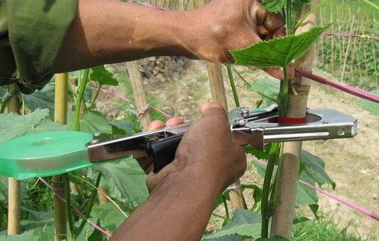 以订带来打结,单手操作即可完成束带动作捆绑住作物茎蔓。结构精巧,操作简便,率高, 不会损伤作物。广泛用于葡萄、西红柿、黄瓜、丝瓜、辣椒、茄子、花卉等枝条藤蔓植