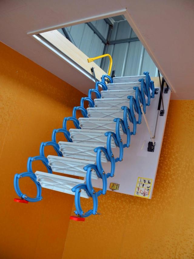 阁楼伸缩楼梯是国外引进的新型楼梯品种,形式新颖,美观大方,是小阁楼的最佳伙伴,小巧方便,伸缩自如,释放了更多家居空间,使居家生活更为舒适。