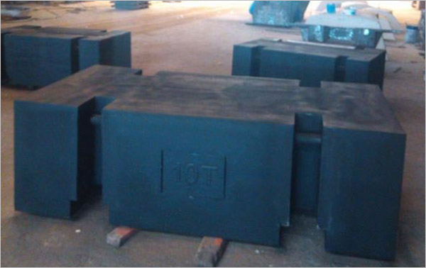 形状:矩形设计形状,并要求在砝码两侧有可用于装卸的沟槽和在砝码底部用叉车搬运的搬运沟槽。砝码的边和角应修圆,表面不应有锐边或锐角和明显的砂眼,以防止磨损和积灰。