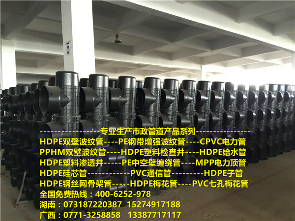 公司主要生产市政工程管道 民用管道 塑料检查井,是中南地区生产管道品种最多最齐全的生产厂家之一。