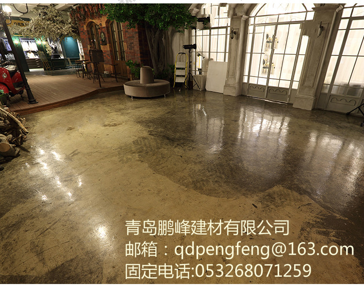 色彩持久性:复古地坪是渗透到混凝土表层,使其表层发生化学反应,产生某种颜色的氧化物从而使混凝土表面具有一种永久性的色彩,这些颜色是不会褪色、碎裂或者剥落。 着色剂与混凝土表面发生化学反应而使混凝土表面具自然真石的仿真效果,但又不像大理石会产生放射性元素;和保护剂一起使用,拥有木地板的回弹舒适脚感,但又不存在木地板产生的甲醛释放现象,极具环保概念。 突破传统地材的尺寸局限,可以按客户各种要求进行施工制作。 突破传统地材对地面图案制作的限制,给设计提供广阔的设计空间。 结构坚固,与混凝土完全一体化,不会有起泡剥落现象,经久耐用。 符合环保标准,无刺鼻气味,无辐射。能做出独特的效果,适用范围广,色彩保持长久,表面易于保养和清洁,性价比高。 地坪的特点: 1.外观自然、真实、具立体感、型材多样; 2.使用范围广泛,可真实地模拟传统建材中的石材、板岩、木纹、墙、地砖等图案; 3.耐冲击性强、耐蚀性强、抗压强度高,抗压强度可达90MP; 4.无毒配方,绿色产品,符合环保要求; 5.外层具有防滑功能; 6.经济、耐用、持久可靠,其寿命远超过一般水泥混凝土地面装饰材料,外观质量和使用性能优越。