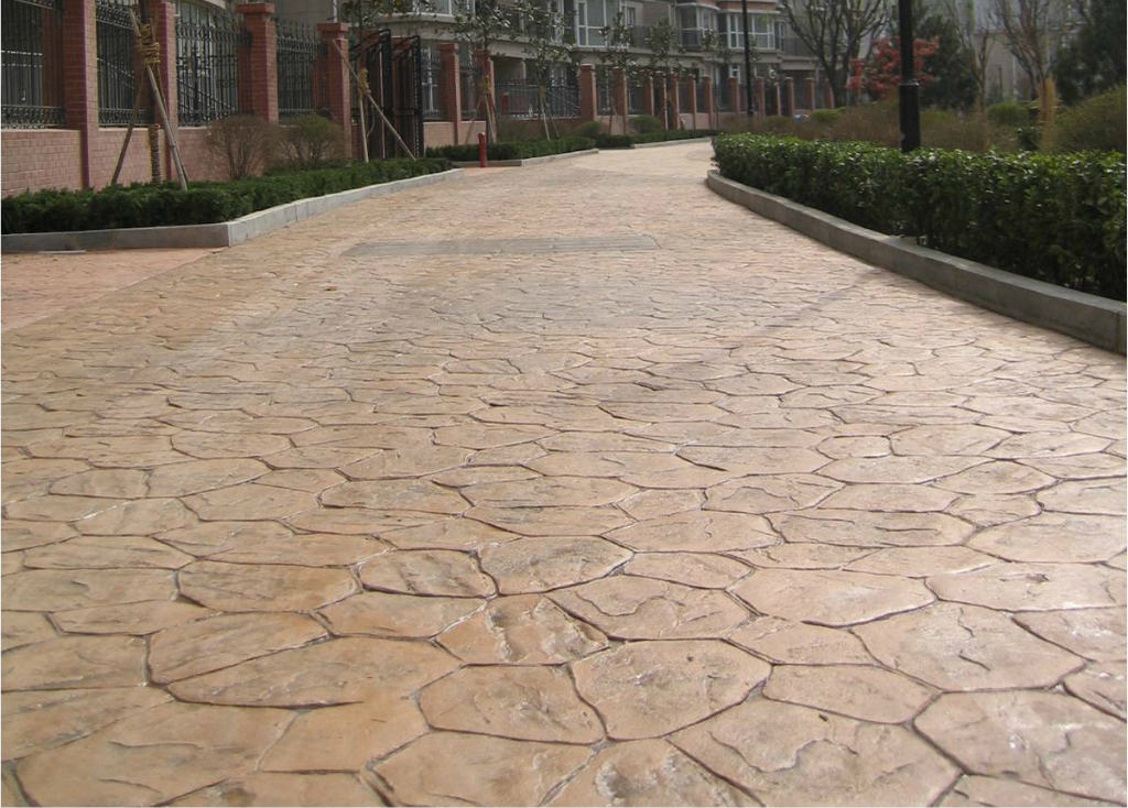 彩色艺术地坪为现场浇筑一体成型的压花地坪系列,用现浇混凝土地面以特制模具及彩色强化料,采用最新技术、配合严禁的施工管理,制作而成。它展现了多彩多姿的图案模型及丰富变化的色彩,更具有耐磨、耐压、止滑的效果及一体成型的特性。