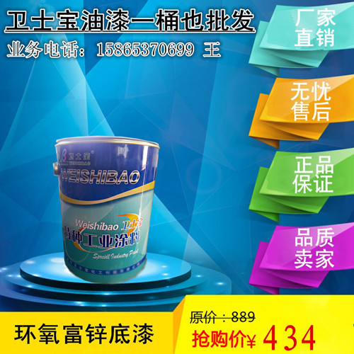 卫士宝牌环氧富锌底漆分为灰色、浅灰、中灰和深灰色,因为是底漆所以颜色要求不高